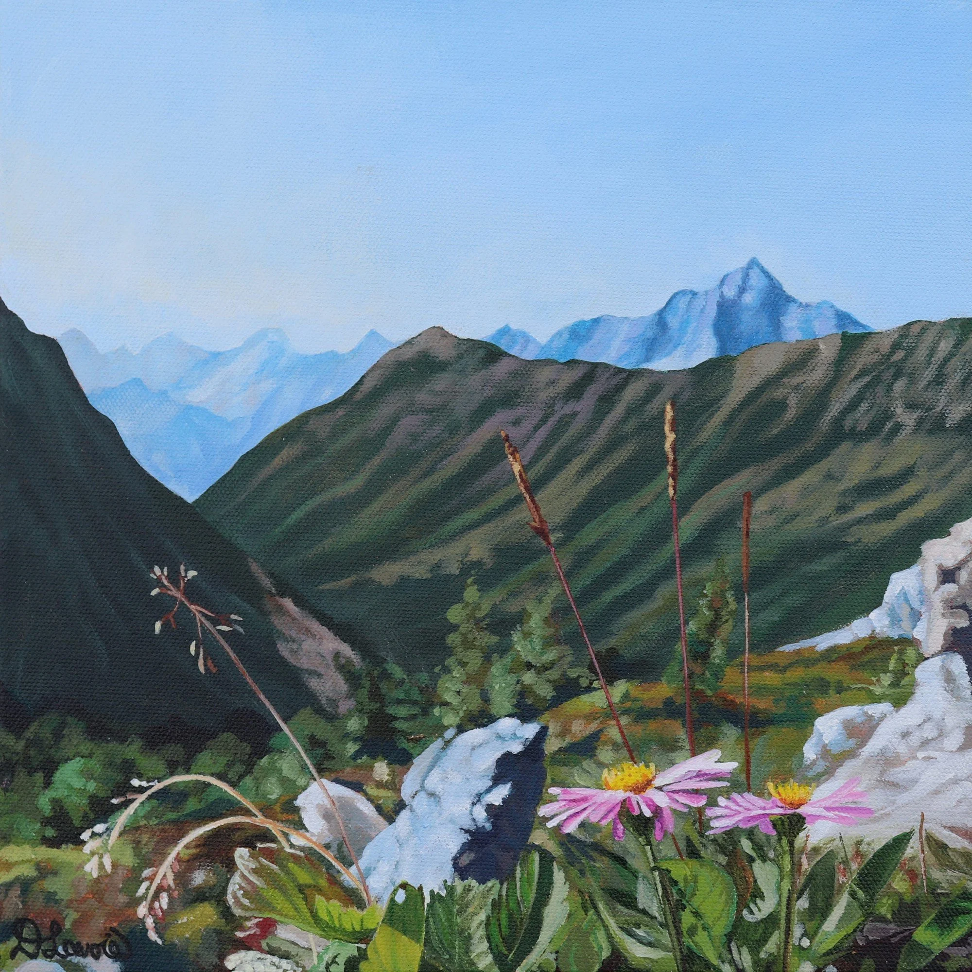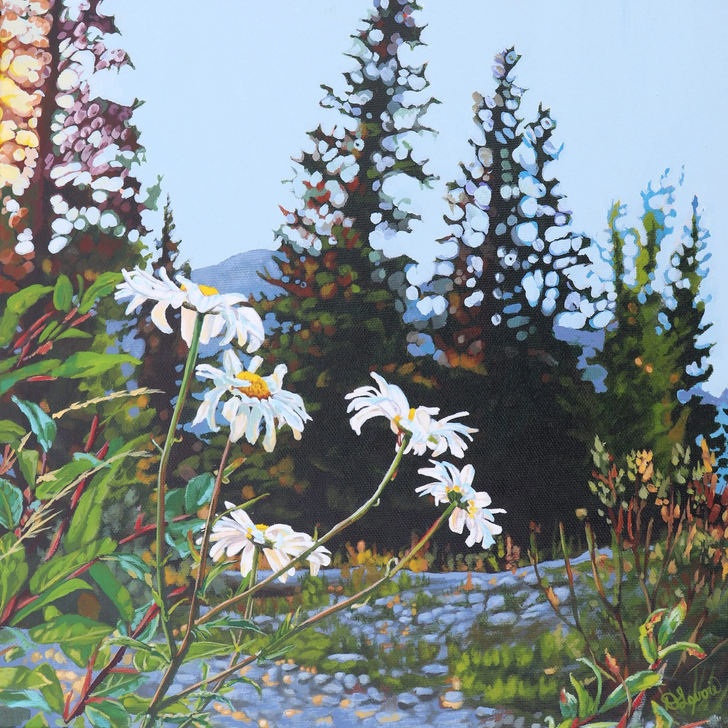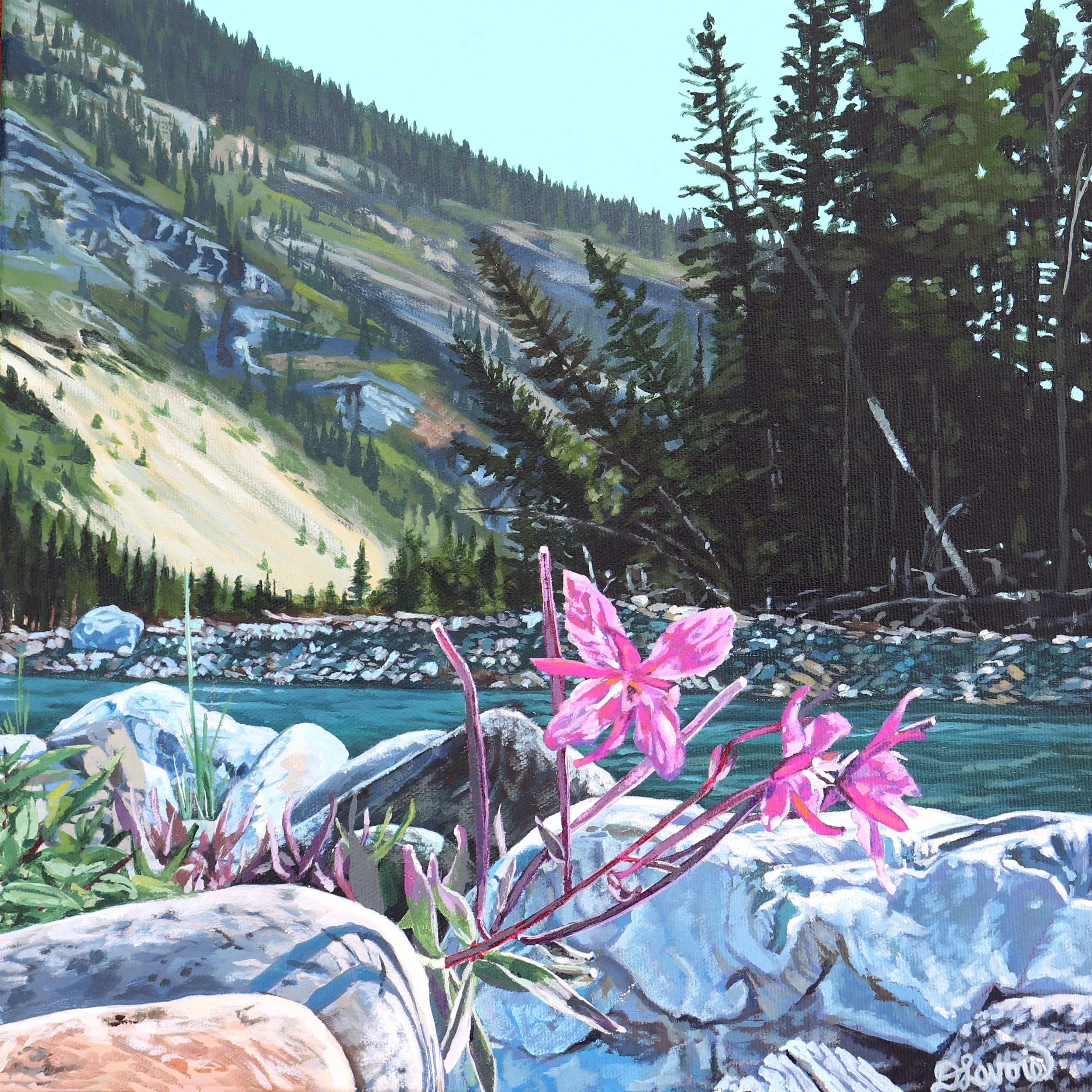 The square landscape paintings celebrate the wisdom of the wild spaces. This wisdom speaks to our resilience, rebirth, awakening, vulnerability, and strengths. Although the 12”x12” Acrylic on Canvas paintings have sold, they are available as Giclee Prints on Canvas. The landscape paintings were inspired by hikes in the Kananaskis and Sheep River Valley of the Rocky Mountains of Alberta.